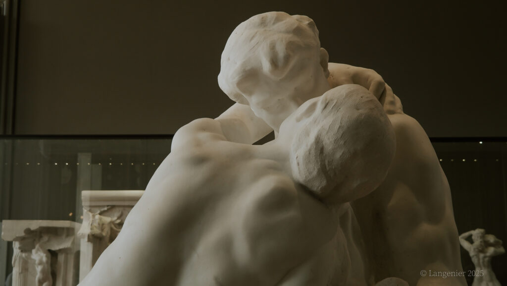 The tour continues inside the house, where intimate rooms display sculptures in white marble, bronze, onyx and plaster. I was particularly moved by the sculpture “The Kiss”, depicting an embracing couple, Francesca and Paolo, the adulterous couple cursed with Hell, inspired by Dante’s Divine Comedy. The woman seems desperately clinging to her lover in a final embrace, and the sculpture’s exhibition frame, throning in the center of the room, adds a very touching theatrical dimension.