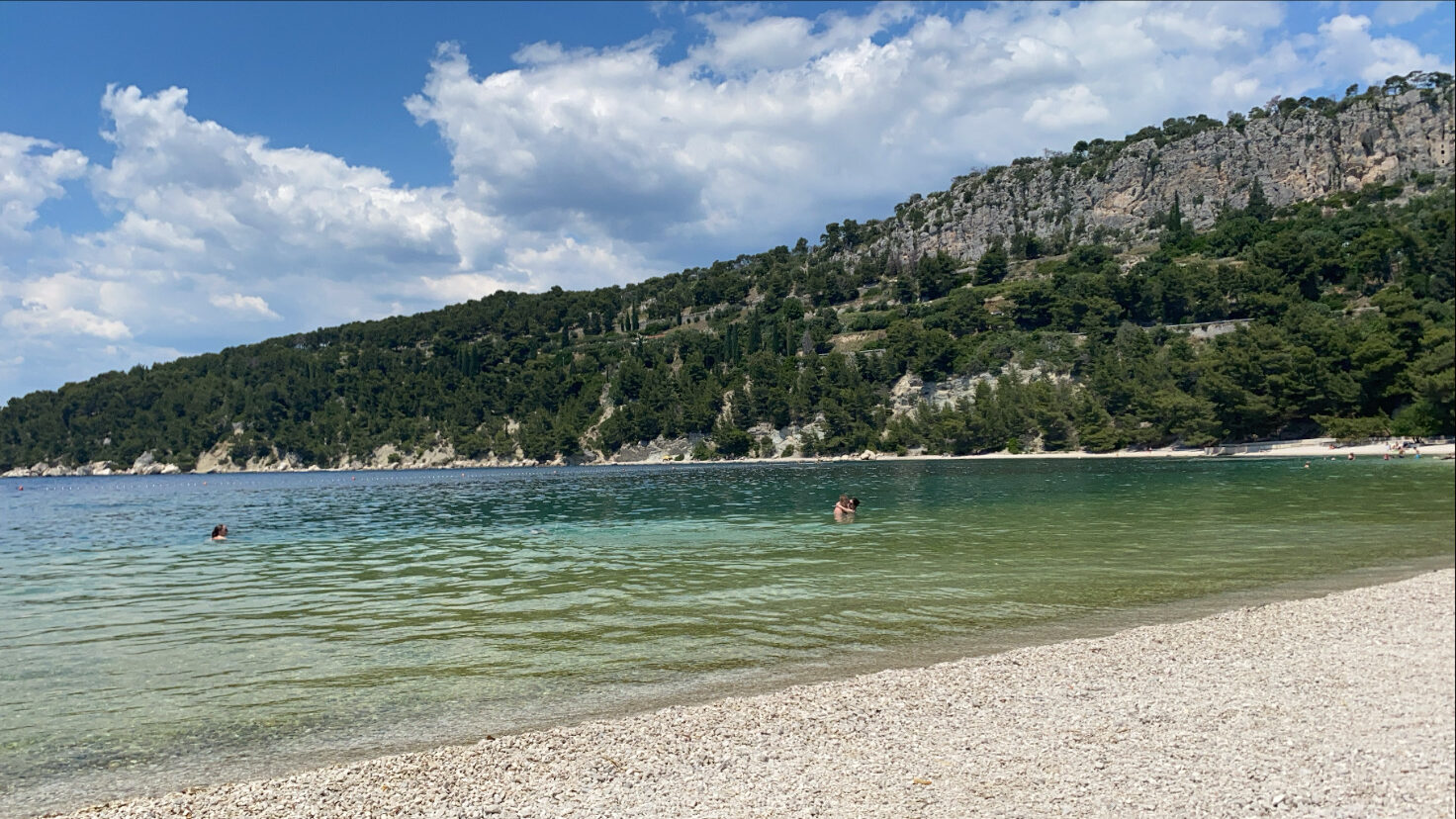 This is, for me, the most beautiful beach in Split, away from the hustle and bustle of Bacvice Beach (a 10-minute walk from the old town). tucked away from the lively Bacvice Beach (just a 10-minute stroll from the old town). To reach it, you’ll either have to walk for about an hour, or opt for a bike ride or taxi. Located at the base of Marjan Hill, the water shines with a striking turquoise colour. If you plan to swim, remember to bring water shoes, as the beach is made up of tiny rocks.